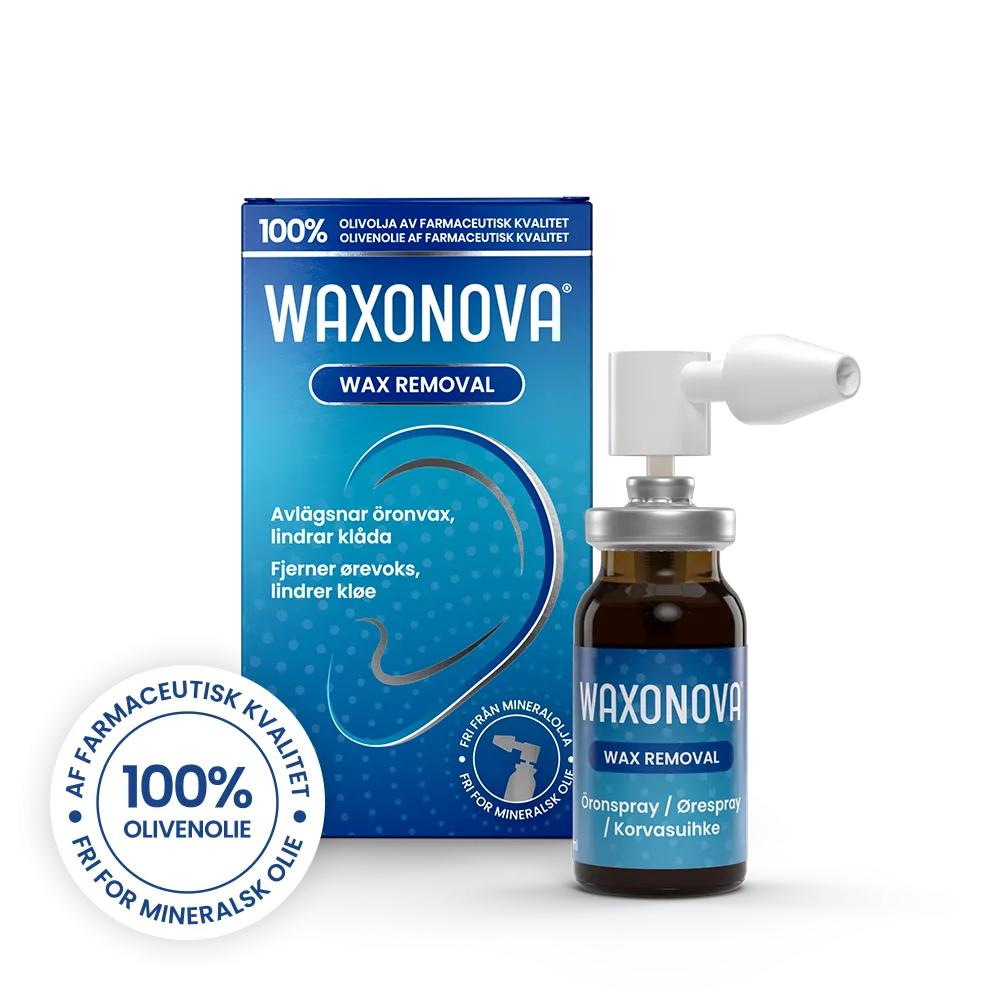 Waxonova Wax Removal er en 100% naturlig, effektiv og letanvendelig ørespray der forebygger og behandler problemer med ørevoks, vokspropper og kløe forårsaget af tør hud i øregangen.